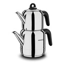Théière KORKMAZ Hera Rouge - Capacité: 1.1 - 1.9 L - Matériel: Acier inoxydable 18/10 Cr-Ni - Base à induction - Conception spéciale - Poignées et collines en bakélite cuites à la main - La théière inférieure à un Couvercle coupe Vapeur - Base triple capsule triplex - Couverture double- Surfaces extérieures soigneusement polies qui conservent leur éclat - Compatibles au lave-vaisselle
