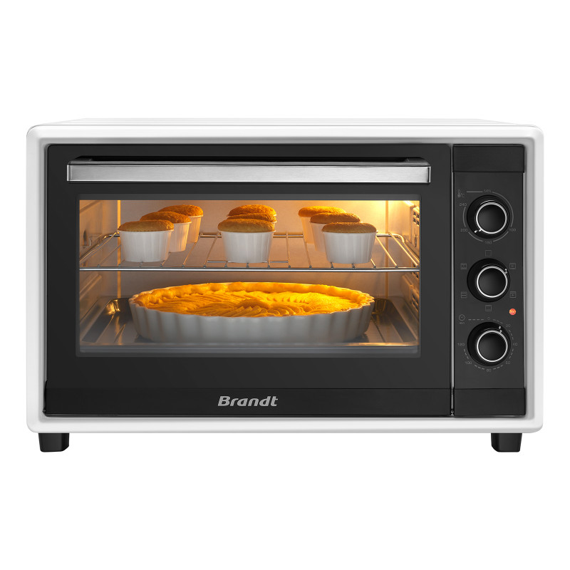 Four Brandt FC55MUW - Capacité 55L - Puissance totale 2200W - Puissance gril 1650 W - Fonctions appareil de cuisson: Tournebroche, décongélation - 5x Modes de cuisson: Convection naturelle, Multifonction dont chaleur tournante, Gril, Gril ventilé et Sole ventilé - Thermostat: Réglable jusqu'à 240° - Diamètre accepté plat ovale: 38 cm - Minuteur: 120 min